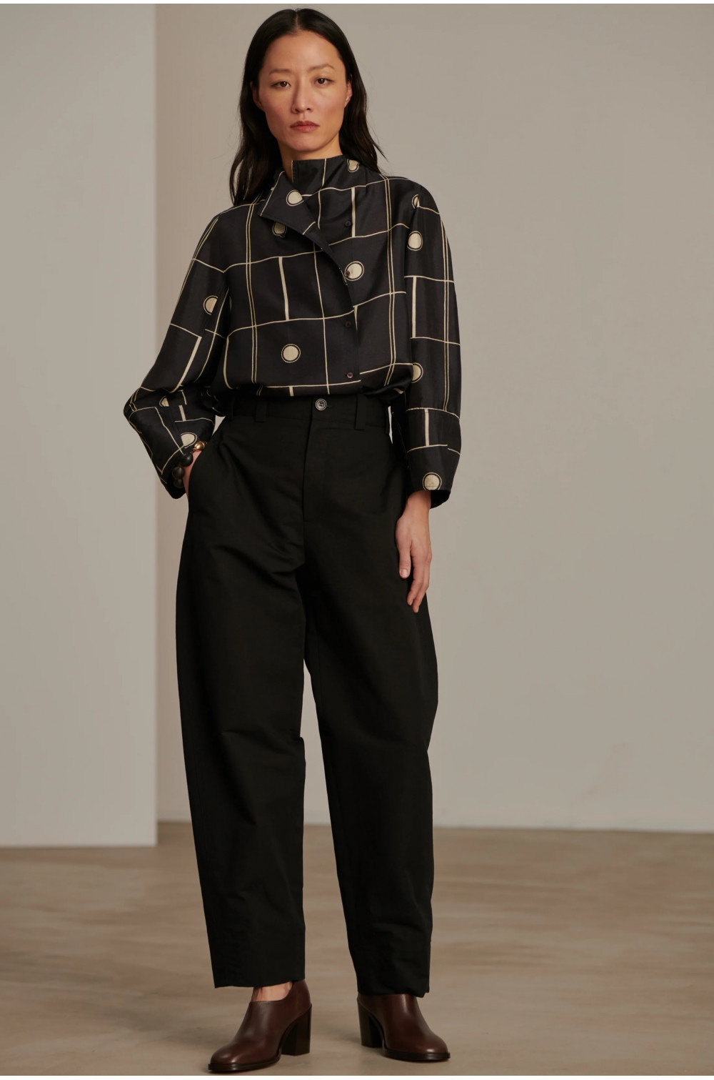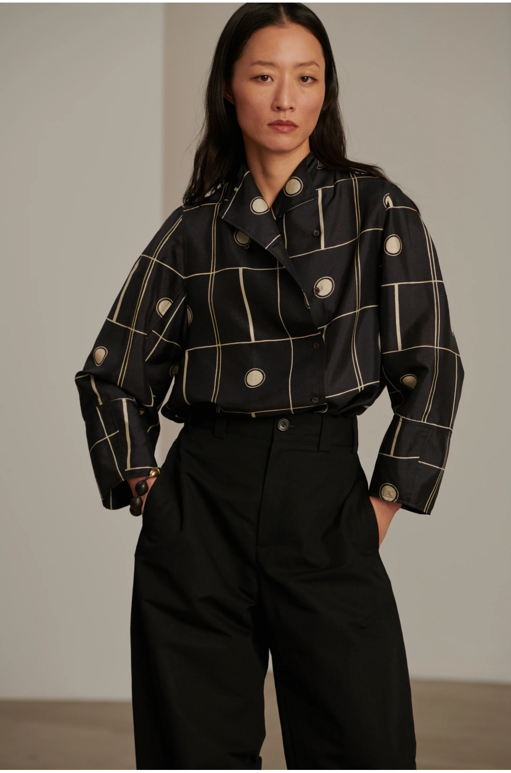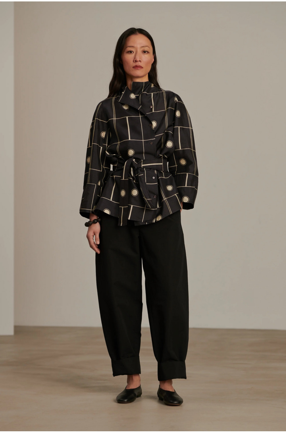 La mannequin mesure 1m75 (5'7) et porte une taille 38.