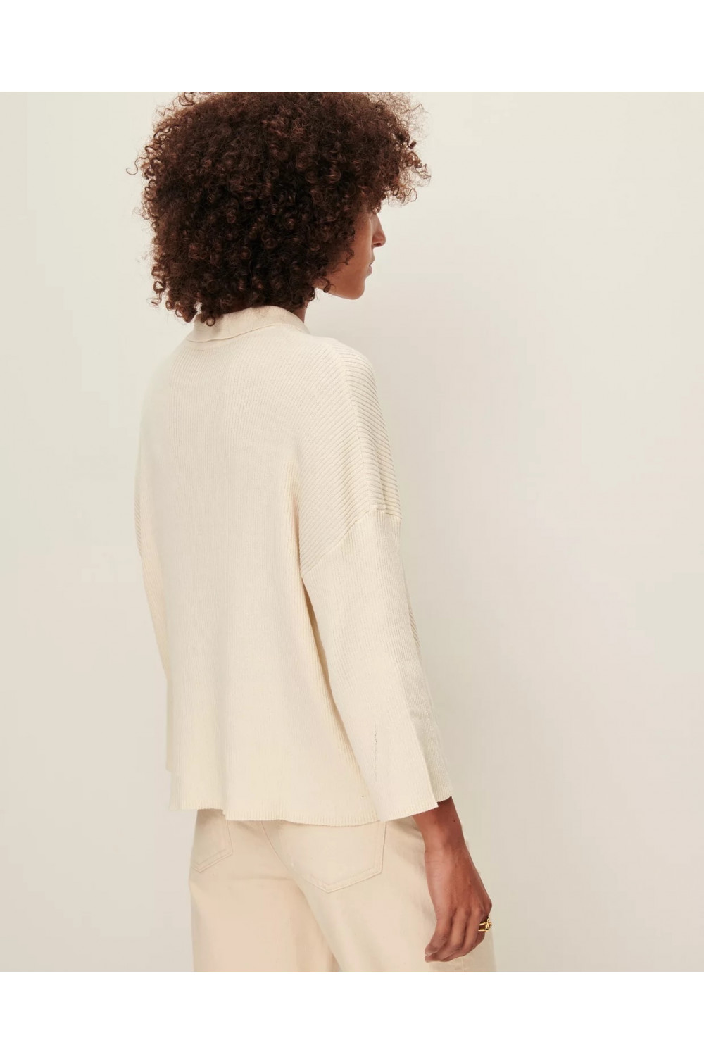 Chemisier court élastiqué au dos, détail de liens, en popeline souple chambray à rayures dobby esprit surpiqûres, tissée en Italie, exclusif Sessùn.
